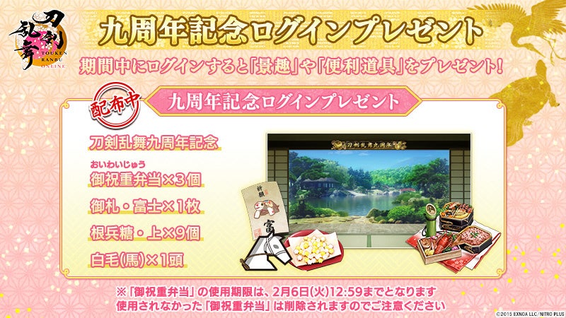 - 九周年記念キャンペーンやログインプレゼントも開催される
