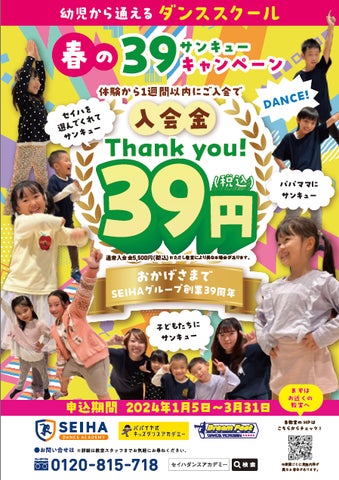 2024年1月5日から3月31日まで、セイハダンスアカデミーでは「春の39キャンペーン」を実施しています。