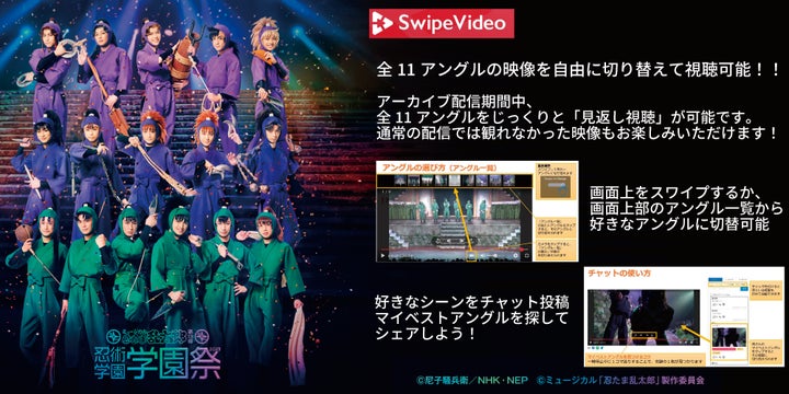AMATELUS株式会社は、ミュージカル「忍たま乱太郎」製作委員会と共同で、マルチアングル配信「SwipeVideo」によるミュージカル「忍たま乱太郎」第13弾の視聴を実施しています。