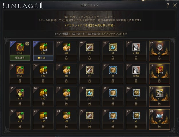 ライブサービスでは、簡単なログインだけでアイテムを手に入れることができる「出席チェック」イベントがあります。