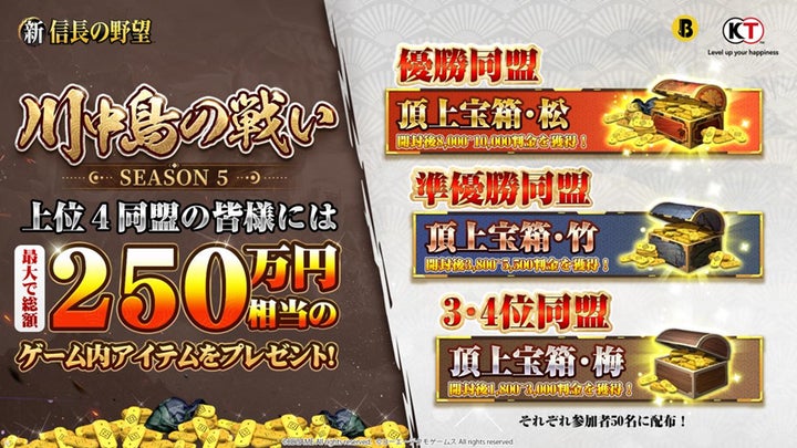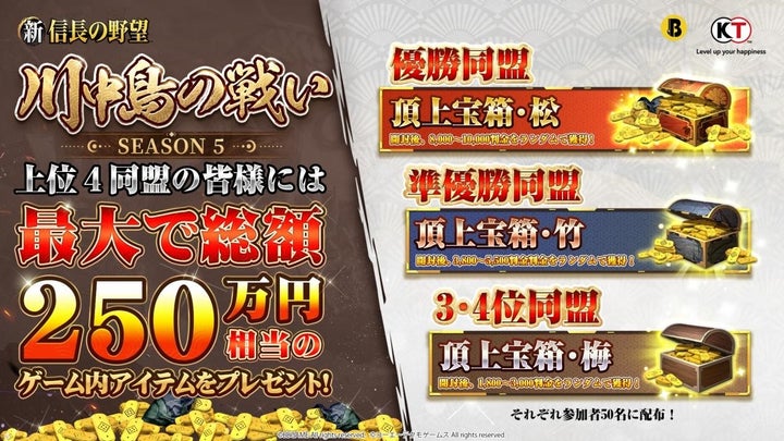 • 優勝者と上位同盟には最大で総額250万円相当の豪華賞品が贈られる
