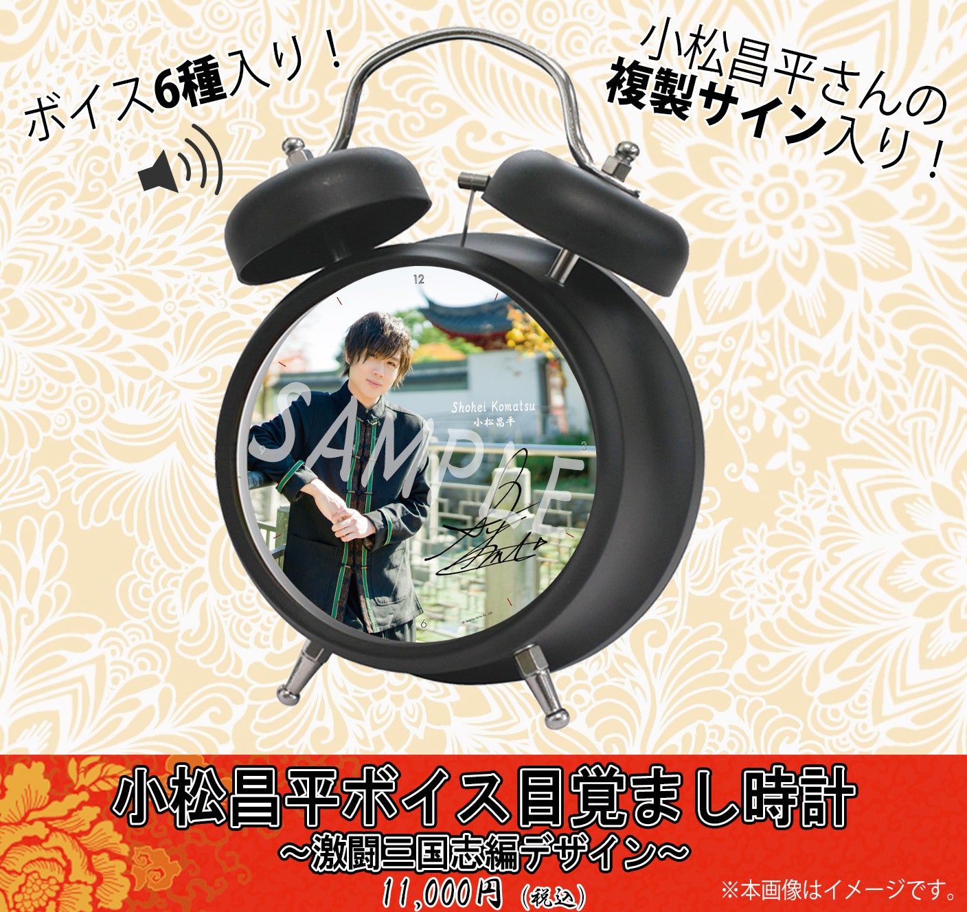 グッズのラインナップには、小松昌平さんの写真を使用したブロマイドセットや缶バッジ、目覚まし時計などがあります。