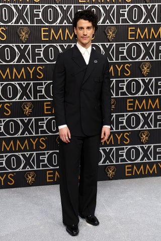 ニコラス・ブラウンも、ブラックウールとシルクのタキシードにホワイトのコットンシャツを組み合わせ、洗練されたスタイルを披露しました。