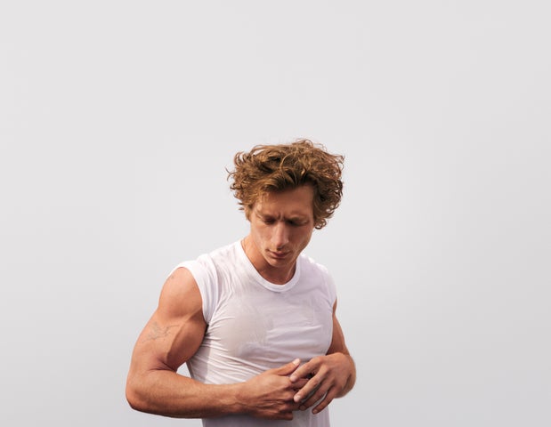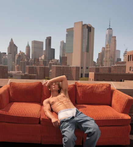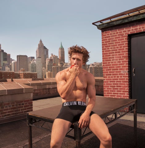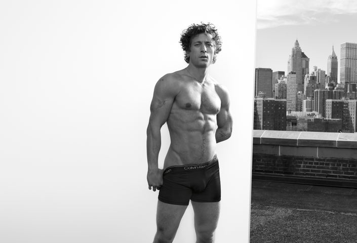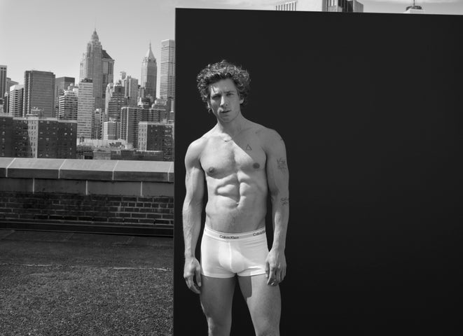 - ジェレミーはCalvin Kleinのアイコニックなスタイルを着用し、力強いエネルギーを表現している