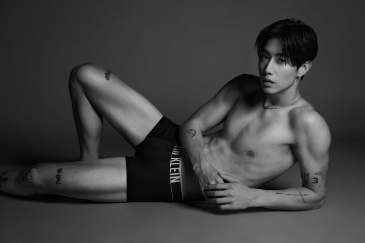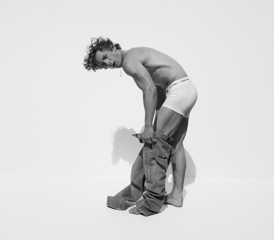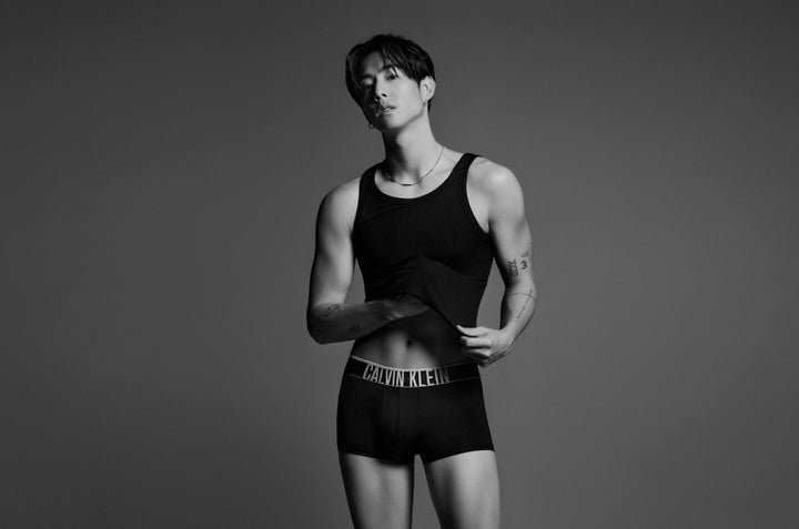 彼はCalvin Kleinのアイコニックなスタイルであるインテンスパワーやモダンコットンを着用し、力強いエネルギーを表現しています。
