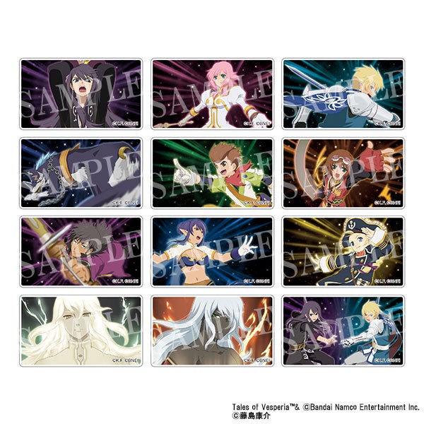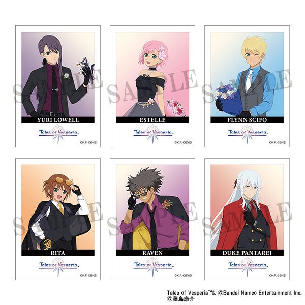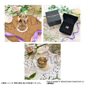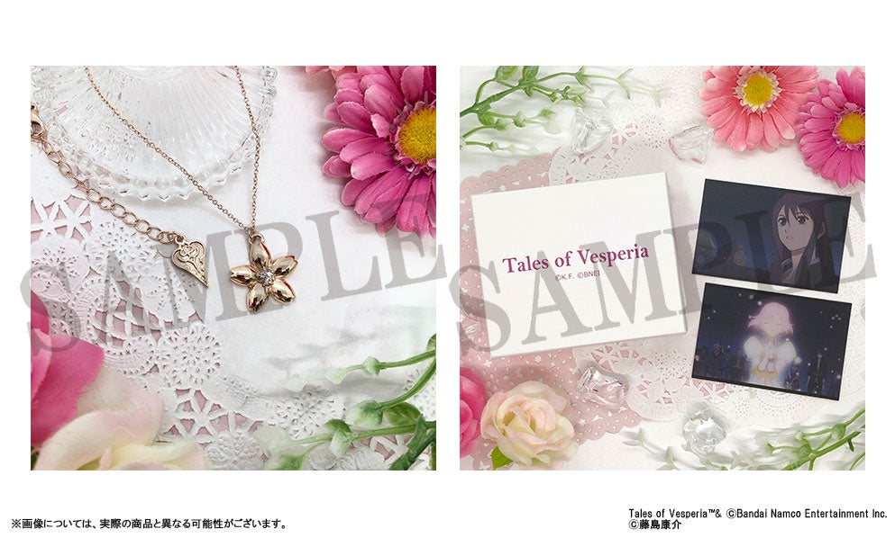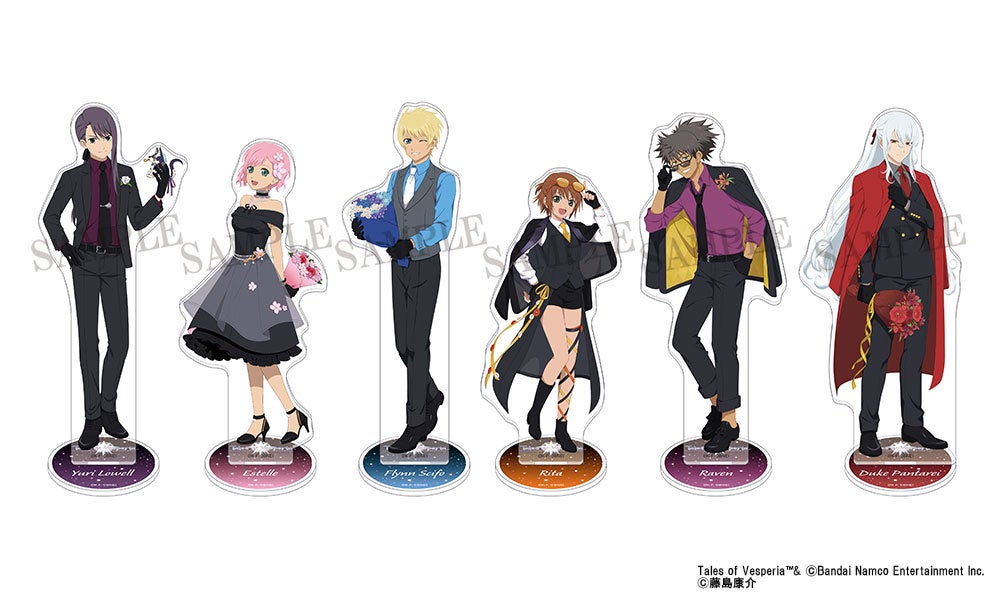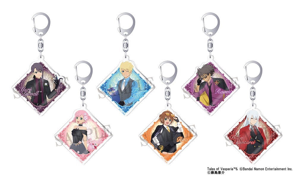 商品情報には、アクリルスタンド、キャラバッジコレクション、アクリルキーホルダー、スタンド付きアクリルキーホルダーコレクション、キャラバッジコレクション ちびキャラ、ペタコレクション、秘奥義アクリルバッジコレクション、勇者の挑戦状 封筒、コンパクトミラー/レイヴン、ハルルの花ペンダント/エステル、静電気軽減ブレスレット、クッキー入りボトル、ブラスティア型リング/ユーリ・ローウェルがある。