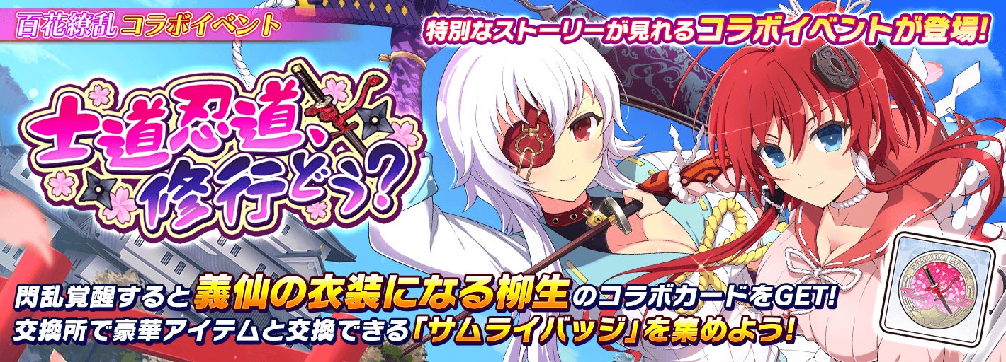 - 専用バッジ「サムライバッジ」やURまで覚醒可能なコラボカード「SSR 柳生(半蔵忍装束)」手に入る
