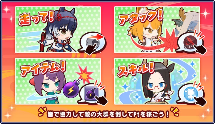 このゲームは、最大4人のチームで協力して大ボスを倒すバトルゲームです。