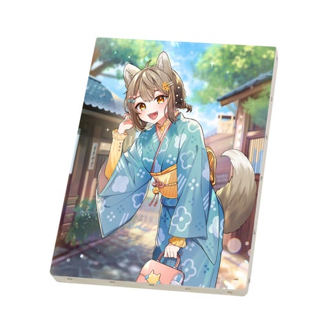 セットには描き下ろしイラストを使用した「キャンバスパネル」とメッセージカード入りの「御守り」が含まれています。