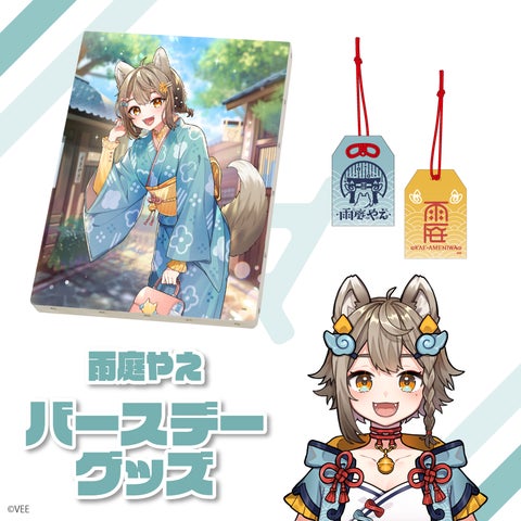 雨庭やえの誕生日を祝うバースデーグッズが公開され、公式オンラインショップ「VEE Official Shop」で受注販売が開始されました。