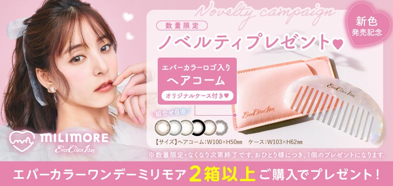 - エバーカラーワンデーミリモアを2箱以上購入でオリジナルヘアコームがプレゼント