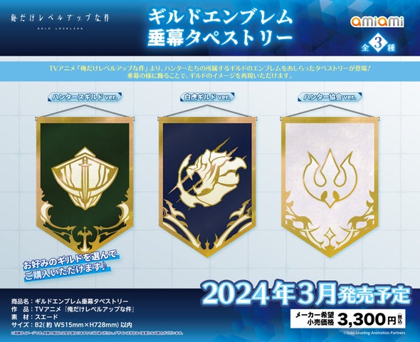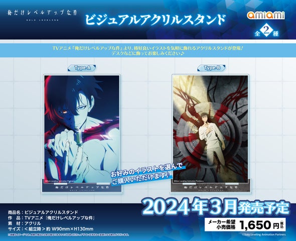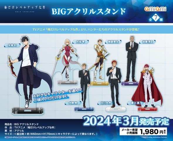「あみあみ」というフィギュア&ホビー通販大手は、2024年3月にTVアニメ『俺だけレベルアップな件』のグッズ8種類を発売予定です。