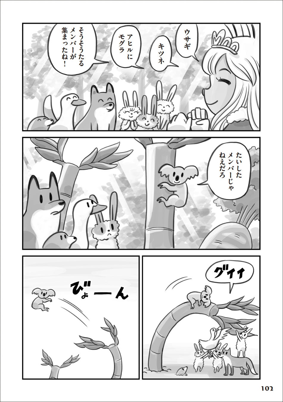 - ウサギのプリンセスと動物たちの楽しい日常が描かれる