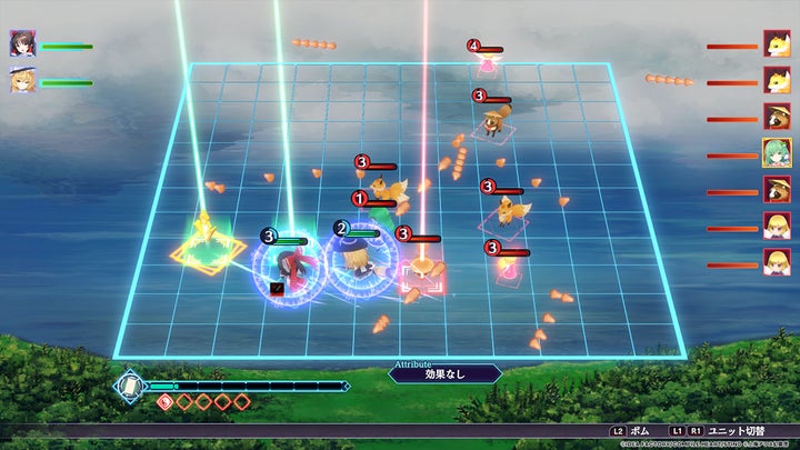 - マス目で区切られたフィールド上で弾幕を駆使して戦略的なバトルを楽しめる