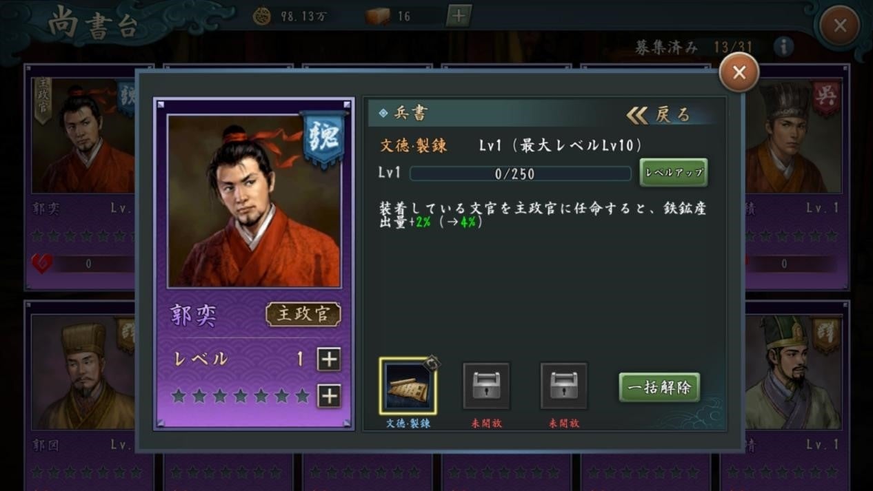 さらに、文官システムも開放され、一部の兵書が文官専用となります。