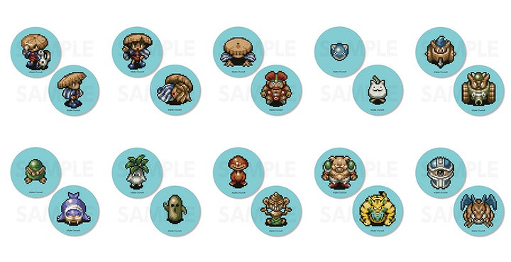 アクリルクロックやアクリルブロック、ダイカットクッション、武器型メタルチャーム、アクリルキーホルダー、44mm缶バッジセットなど、美麗なビジュアルや懐かしいイラストを使用したグッズが揃っています。
