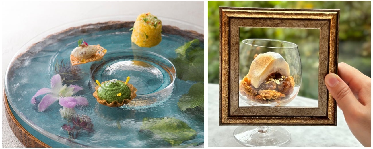 - モネの代表作「睡蓮」をイメージしたカナッペやスイーツ