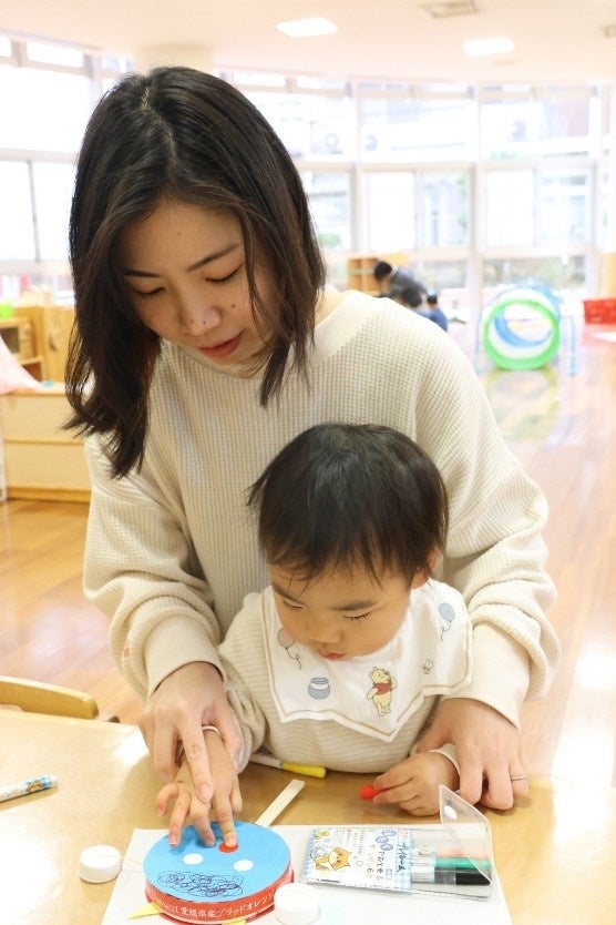 - 子どもたちは保護者の協力を得ながらでんでん太鼓を作成