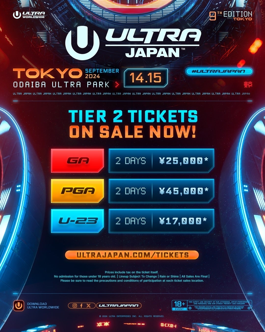 ULTRA JAPAN 2024実行委員会は、2024年9月14日(土)、15日(日)の2日間、TOKYO ODAIBA ULTRA PARKにて「ULTRA JAPAN 2024」を開催します。