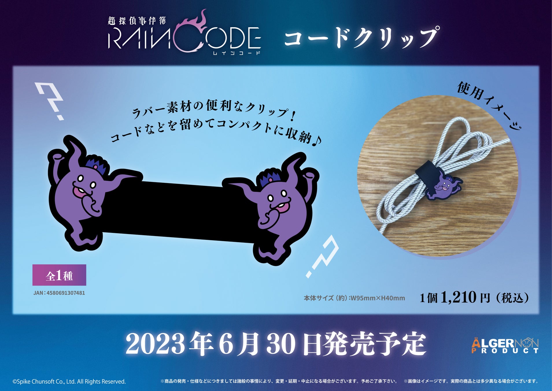 株式会社アルジャーノンプロダクト(本社:東京都台東区、代表:高山 聡士)は、株式会社スパイク・チュンソフトから発売予定の『超探偵事件簿 レインコード』新商品グッズを、全国のグッズ・ホビー取扱ショップおよびEC サイト等にて予約販売を本日より開始いたします。