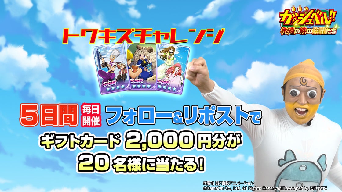東映アニメーションは、スマートフォン向けの絆育成RPG『金色のガッシュベル!!永遠の絆の仲間たち』で、「トワキズ チャレンジ」を開催します。