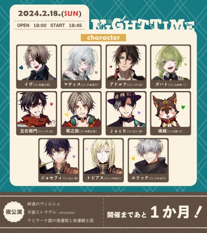 - サブキャラクター、隠し攻略キャラクター、22人のキャラクター、販売スケジュール、注意事項、トークテーマ、アーカイブ視聴期間