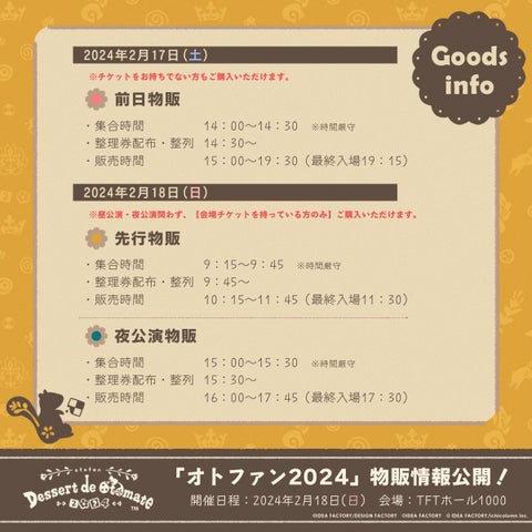 - 物販アイテムの詳細は近日中に公開予定、販売スケジュールや注意事項も掲載