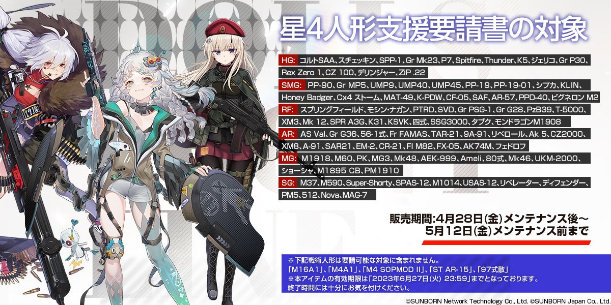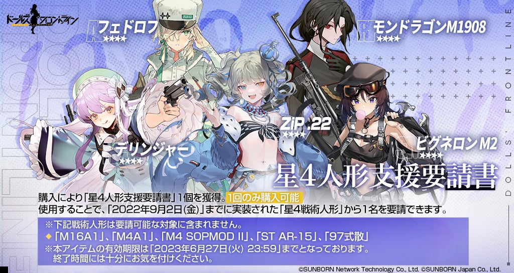 株式会社サンボーンジャパンは、スマホ向け戦略型シミュレーションゲーム『ドールズフロントライン(以下、「ドルフロ」)』において、大型イベント「静止点-Fixed Point-」」を5月26日(金)より開催することをお知らせいたします。