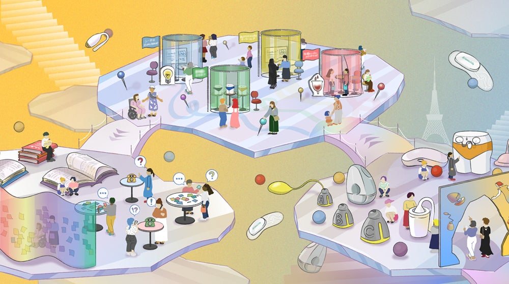 - 早産を検知するナプキンや目の不自由な方の生理をサポートするデバイスなどが展示