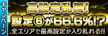 さらに、毎日一回無料ガチャ降臨や全機種全エリアで設定6が66%設置などの特別イベントも開催されます。