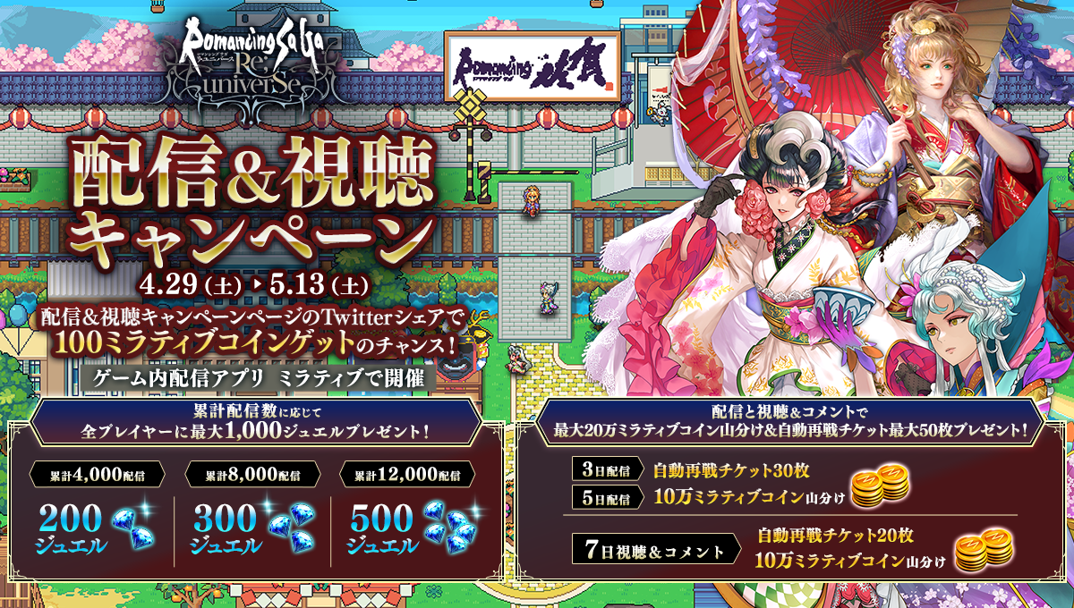 アカツキゲームスは、スクウェア・エニックスの「ロマンシング サガ リ・ユニバース」において、2023年4月28日から「Romancing佐賀ゴールデンツアー2023!第1弾」を開催する。
