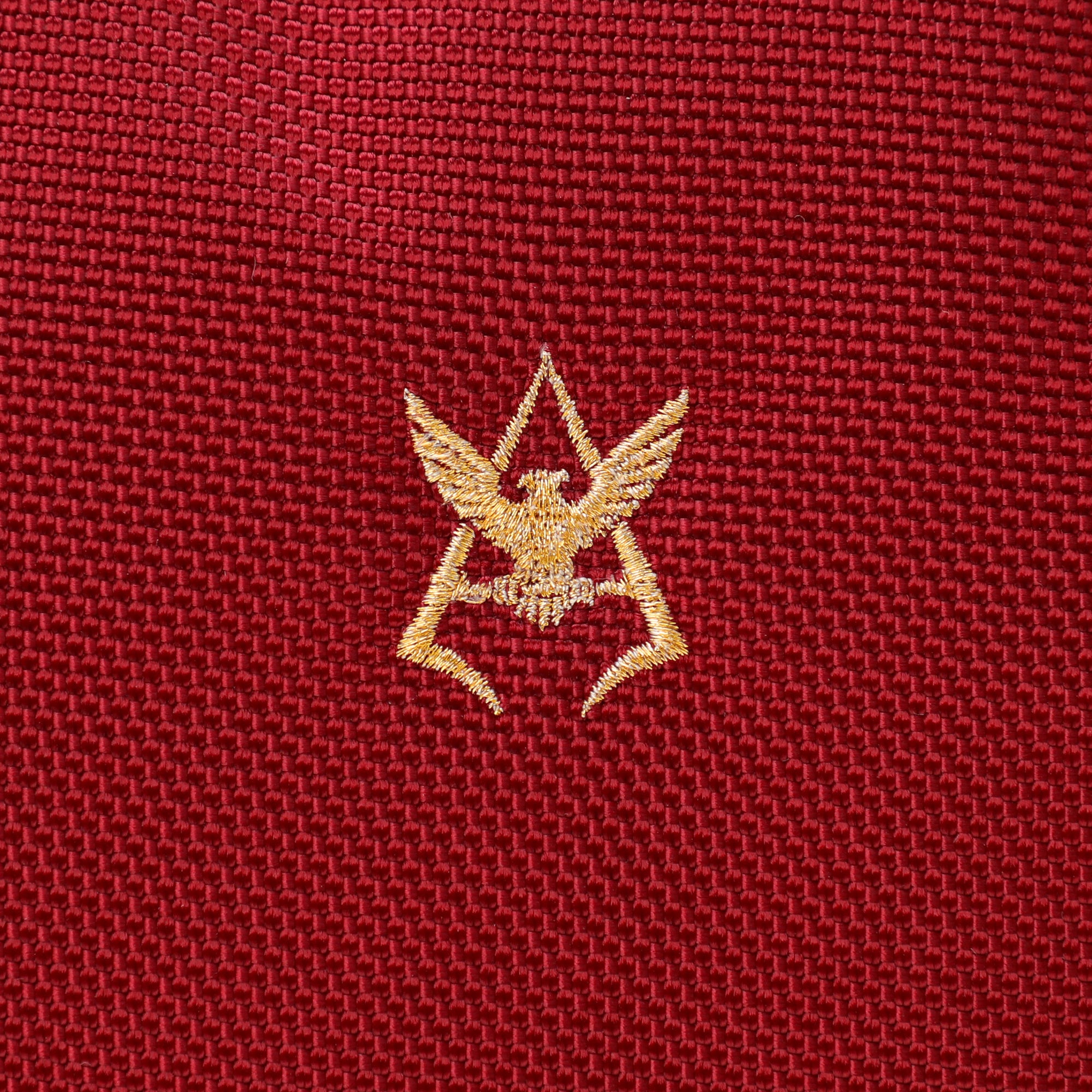 メイン素材に強度に優れた厚手のナイロン生地を採用しています。負荷のかかる底面などの一部分に耐水性や防汚性の高いターポリン生地を使用し、異なる質感の生地を合わせることでコントラストの効いたスタイリッシュなデザインに仕上げています。バッグの前面にシャアパーソナルマークを刺繍で施し、ファスナー引き手に「RED COMET」の文字を素押しで表現したスペシャルアイテムです。