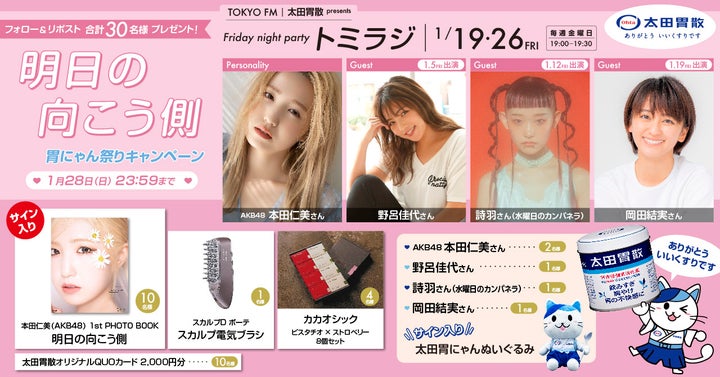 また、このキャンペーンはTOKYO FMの番組『太田胃散 presents Friday Night Party トミラジ』とのコラボ企画ですので、ぜひ番組もお聴きください。