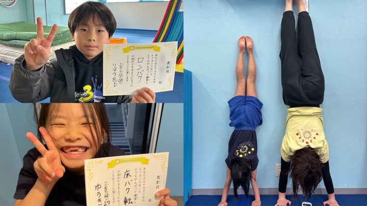 冬期講習では、アスレチックや跳び箱、トランポリンを使ったクラスから逆立ちやバク転、バク宙を行うクラスまで、生徒のレベルに合わせたレッスンが行われました。