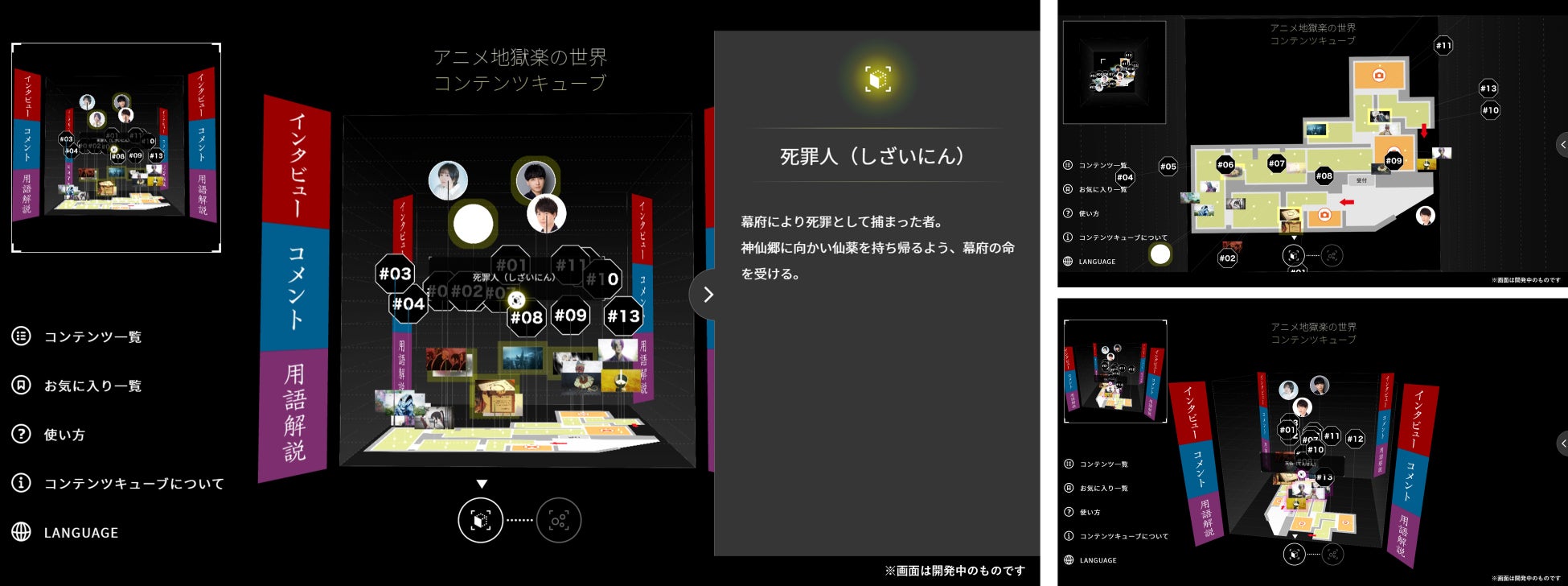展示会場内にあるQRコードを読み取り、「みどころキューブ」という鑑賞システムにアクセスすると、アニメ『地獄楽』の声優キャストによる音声コメントやアニメプロデューサーによる特別コメントなどを楽しむことができます。