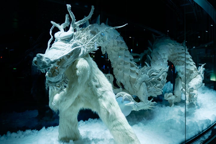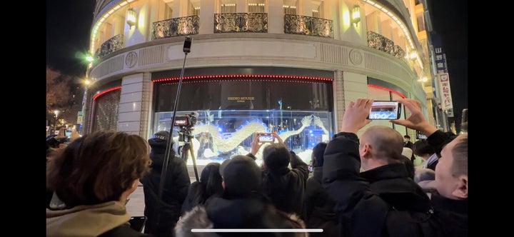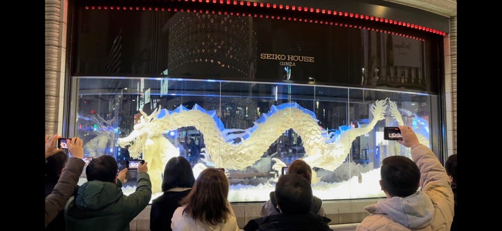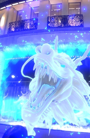 カウントダウンの歌声と共に、ショーウィンドウのシャッターが開き、新しいAR演出「時の龍」が披露されました。