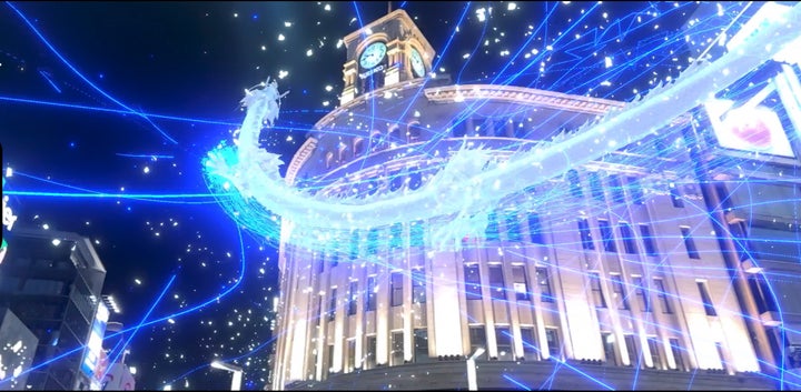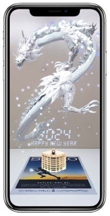 スマートフォンのカメラを使って建物全体に向けると、龍が解き放たれ、銀座の空に舞い上がります。