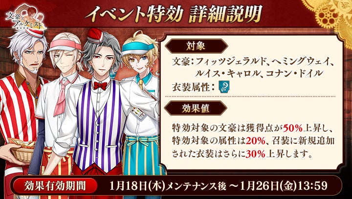 期間中に特定の衣装を組み合わせると得点が上がります。