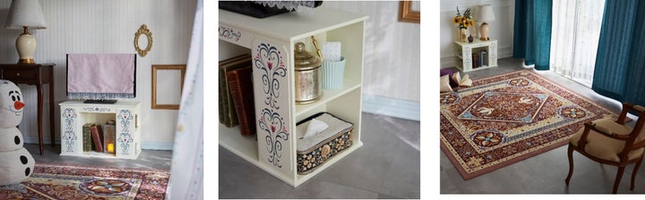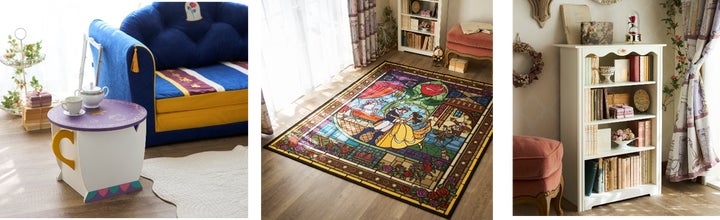 - 美女と野獣ではステンドグラス柄のラグや本棚風ラックなどが登場