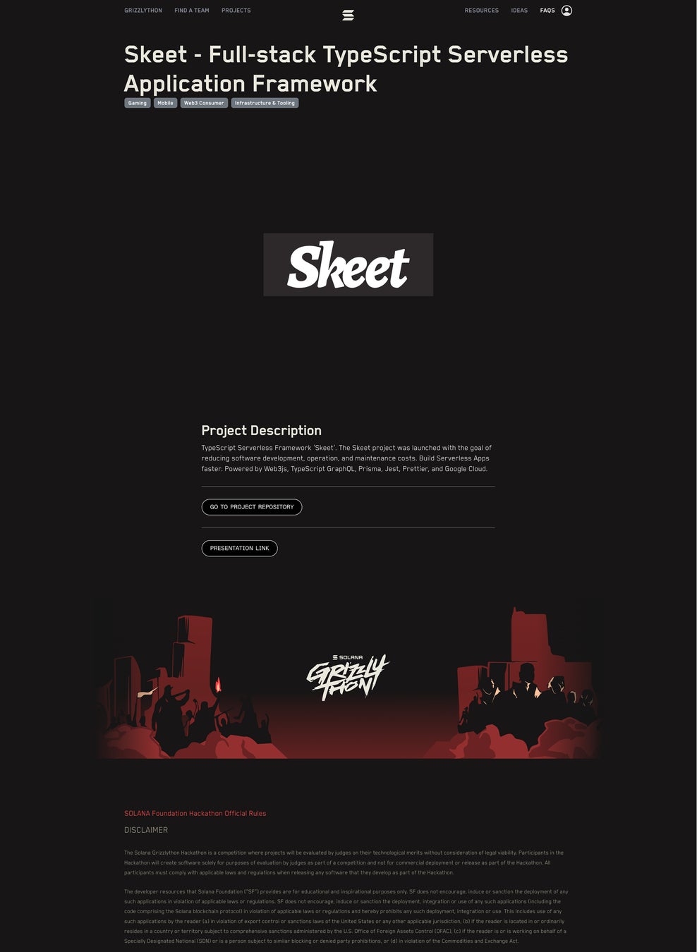 https://solana.com/grizzlython/projects/skeet-full-stack-type-script-serverless-application-framework