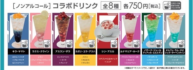 コラボドリンクは全8種類で、キャラクターをイメージしています。