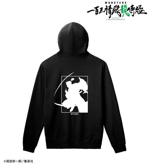 - 商品は日常で使えるキャラクターグッズで、パーカーやTシャツにリューマのシルエットイラストを使用