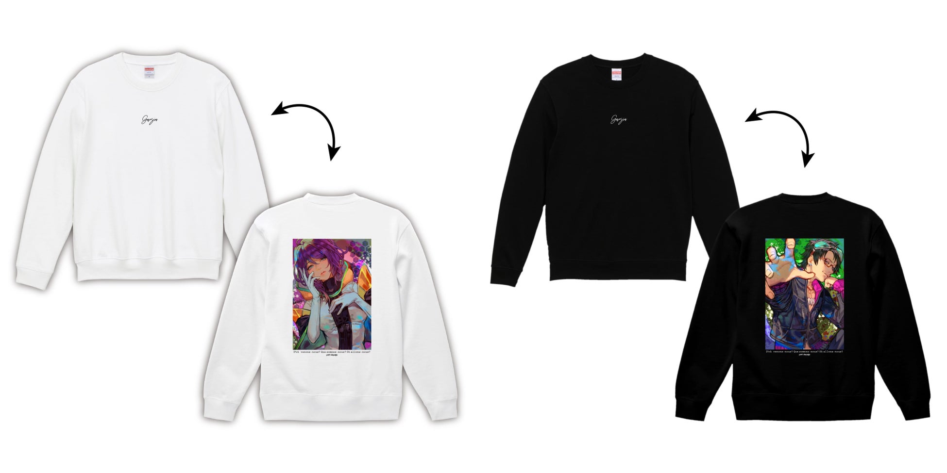 • イラストレーターhncl氏によるジナと沙明の美しいイラストを使用したTシャツやスウェットなど、見逃せないアイテムが揃う
