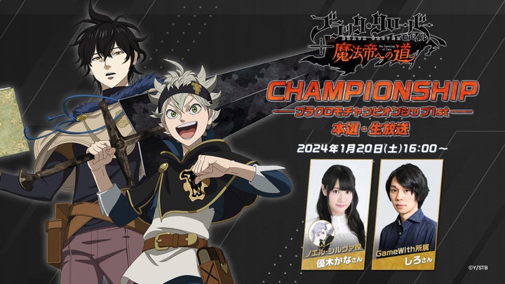 VIC GAME STUDIOS JAPANは、テレビアニメ『ブラッククローバー』のアプリゲーム『ブラッククローバーモバイル 魔法帝への道 The Opening of Fate』のPvP大会「ブラクロモチャンピオンシップ 1st」の本選を1月20日に公式生放送で配信することをお知らせいたします。