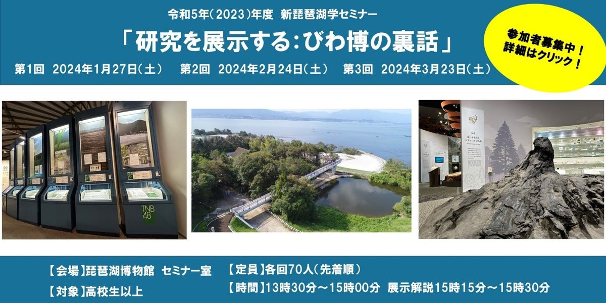 「研究を展示する:びわ博展示の裏話」というタイトルの新琵琶湖学セミナーが開催されます。