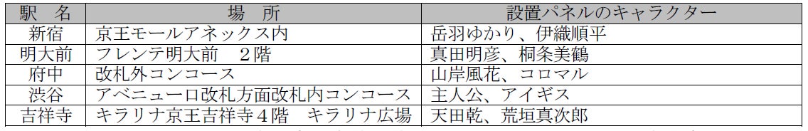 - 京王線や井の頭線の駅に等身大キャラクターパネル設置