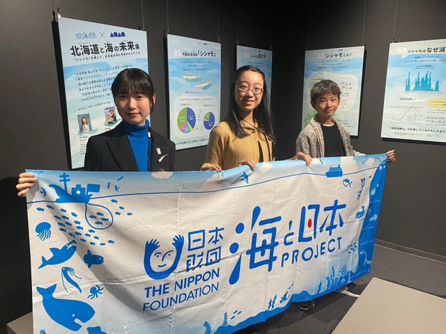 「北海道と海の未来」展は、中学生3人が企画・制作した展示で、海の魅力や課題を伝える活動を行っています。