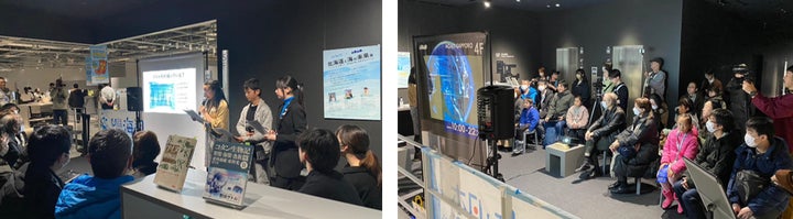 展示初日には中学生によるプレゼンが行われ、来場者からの反応も好評でした。