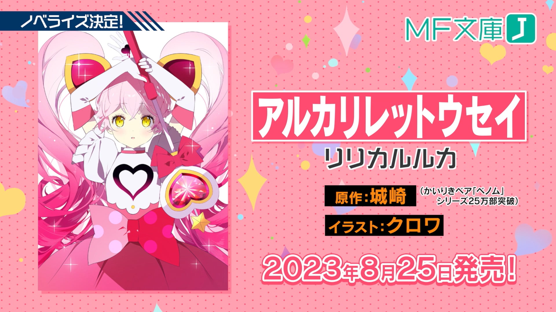 『#コンパス』の人気ヒーローソング『アルカリレットウセイ』をモチーフにしたスピンオフ小説がMF文庫Jより発売されます。原作は、『ベノム 求愛性少女症候群』でおなじみのかいりきベアと城崎が担当。”レットウセイ”な「リリカ」の悩みや日常、そしてルルカとの出会いや二人の関係が描かれます。