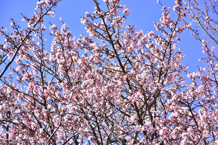 - 約100本の寒桜が咲き誇り、一部の桜は既に満開に近い状態
